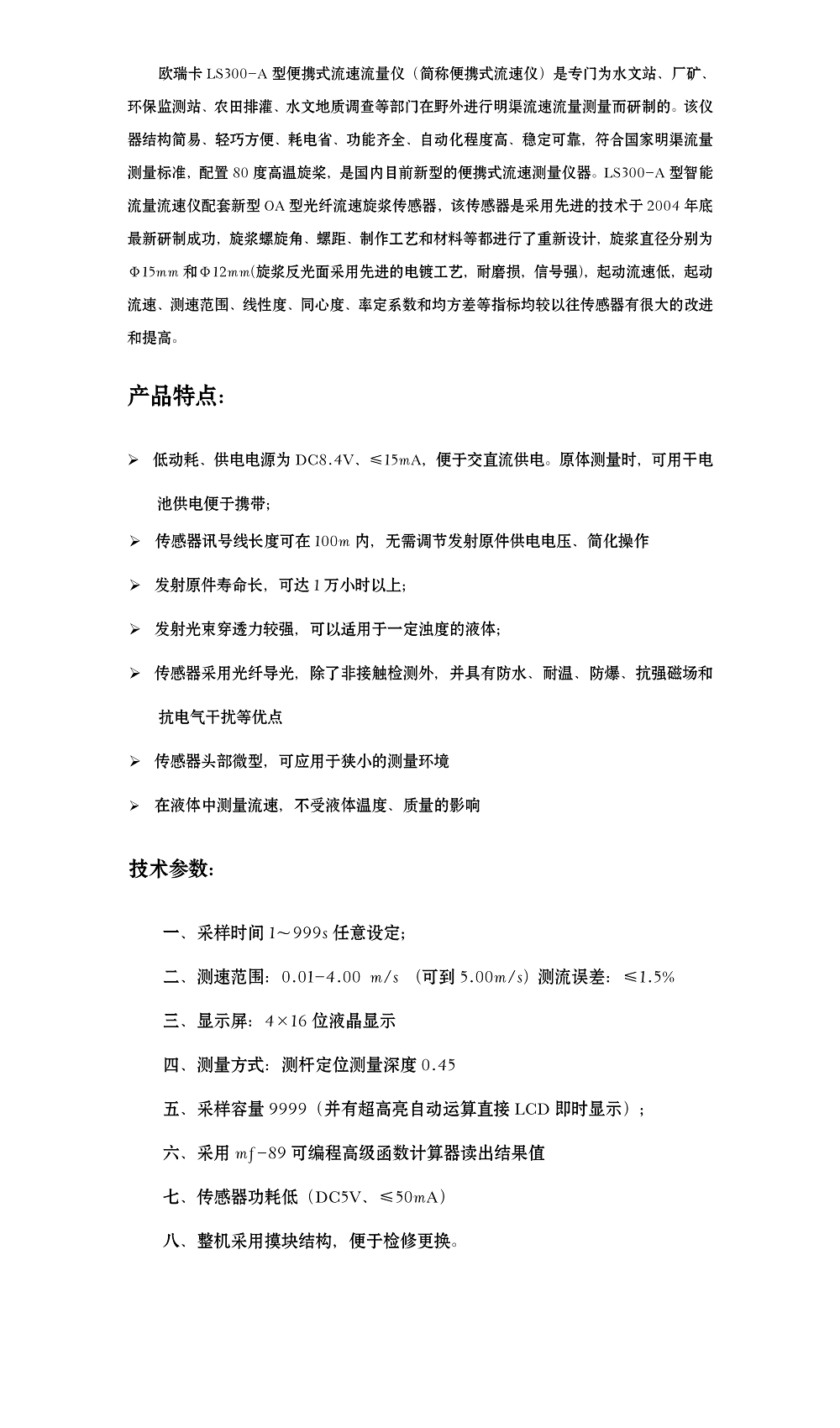 歐瑞卡流速儀LS300-A